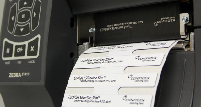 Các công ty gắn thẻ hàng hóa hàng loạt thẻ RFID bằng máy in RFID để tạo nhãn dán vào thùng, các mặt hàng. Nhãn RFID mã hóa hàng loạt thường ở dạng cuộn, là decal dính và có thể in thêm thông tin lên nhãn RFID này.