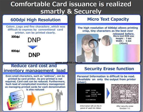 1. Ưu điểm của máy in thẻ 600dpi công nghệ in chuyển đổi DNP CX-D80HS: