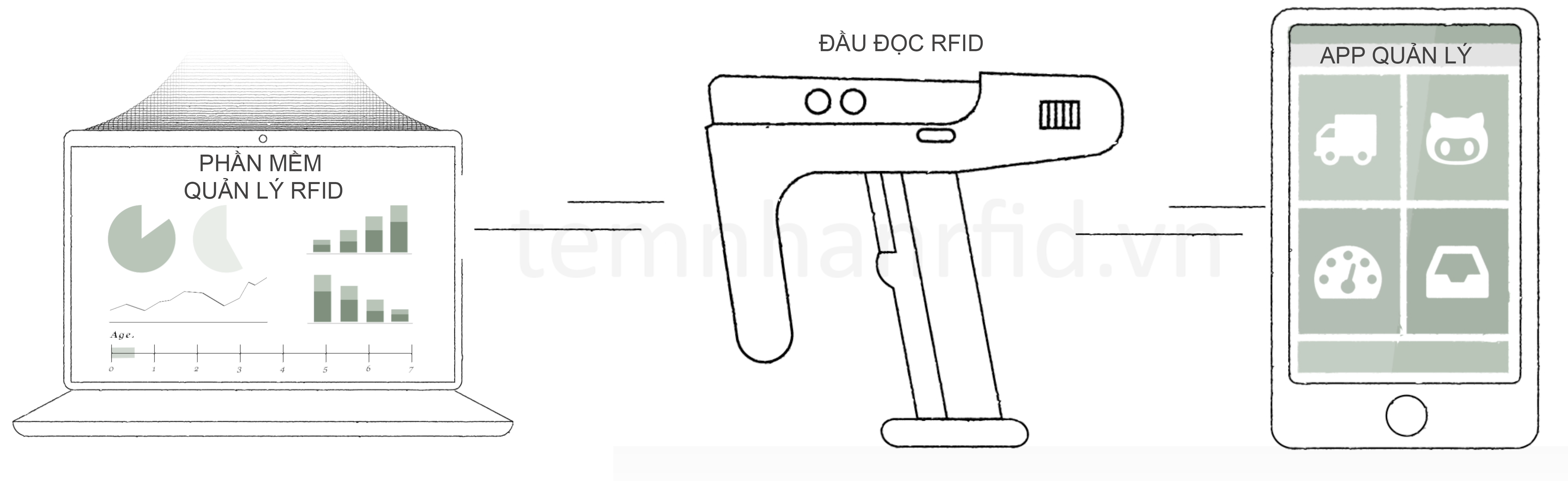 2. Quét thẻ chip RFID với đầu đọc RFID cầm tay di động hoặc cố định: